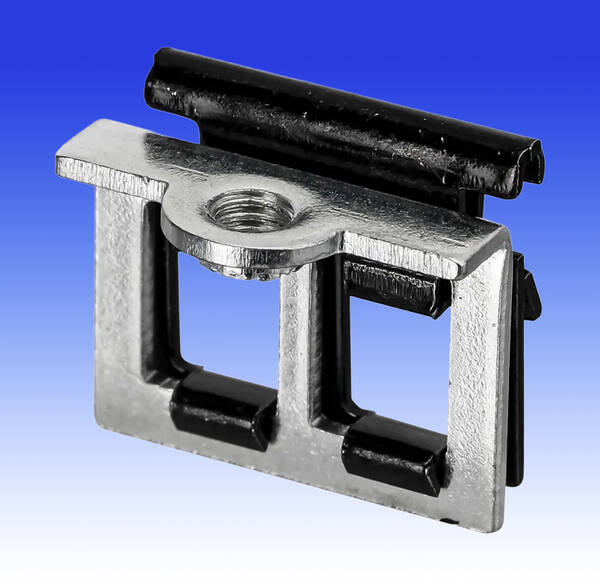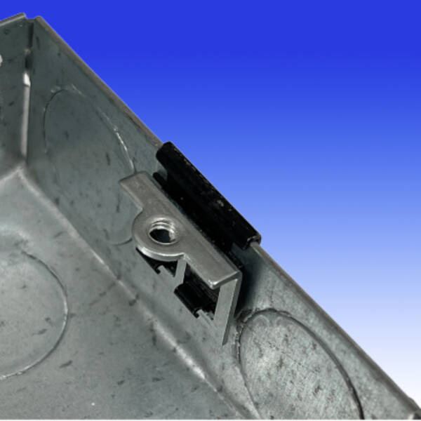 The clip has been designed to instantly replace a broken thread, or lug, on the inside of metal UK electrical back boxes. After removing all snags from the inside of the back box, the clip simply pushes on with ease and, due to the tensioning and calibration of the clip, it will remain firmly and securely in place.